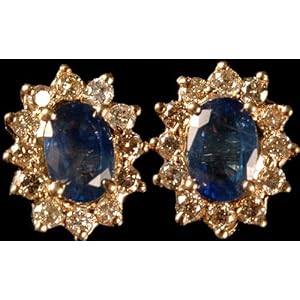 Faceted Sapphire Earrings with Diamonds - 18 K Gold
