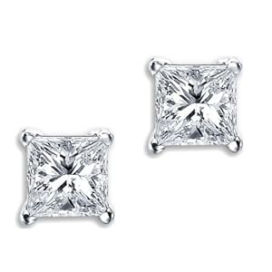 Princess Cut Square Diamond CZ Basket Set Silver Unisex Stud Earrings (5mm 0.75ct.)14k White Gold Round Diamond Stud Earrings (1/4 cttw, I-J Color, I1-I-2 Clarity)