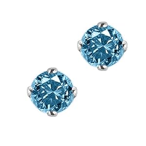 1 ct. Blue - I1 Round Brilliant Cut Diamond Earring Studs in 14K White Gold