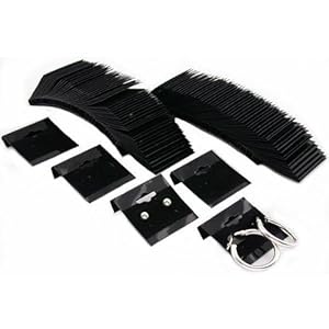 100 New Black Earring Cards For Jewelry Displays, Showcases ; Countertops. This is a new set of 100 black earring cards. These hook top cards have holes for small post, hoop or dangle earrings. Each measures approximately 1 1/2" (38 mm) square and also have tabs for clip earrings.