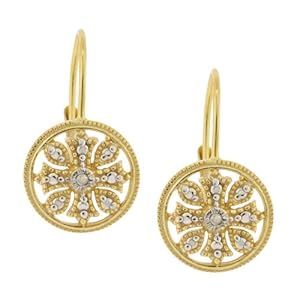 18k Yellow Gold Plated Sterling Silver Diamond Accent Floral Circle Leverback Earrings