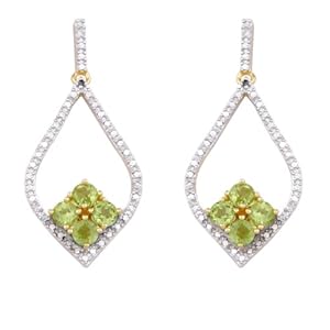 18k Yellow Gold Plated Sterling Silver Genuine Peridot and Diamond Accent Floral Teardrop Earrings
