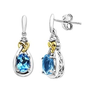 Sterling Silver and 14k Yellow Gold Blue Topaz with Diamond Earrings